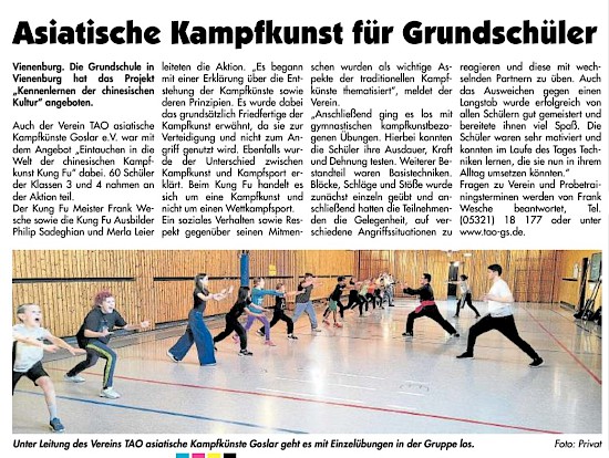 Goslarsche Zeitung - Bericht Kampfkunstlehrgang HO GAR TAI CHI CHUAN